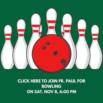 Strike Up Some Fun with Fr. Paul! Get ready for a night of strikes, spares, and smiles at our Parish Bowling Tournament — and yes, Fr. Paul is lacing up his bowling shoes and hitting the lanes with YOU!
