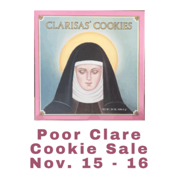 Representatives of the Capuchin Poor Clares of the Monastery of Our Lady of the Light in Denver will sell Poor Clare cookies after Masses on Saturday and Sunday while supplies last. The cookies are baked by the sisters as a way to support their lifestyle as a cloistered community, which exists primarily to constantly raise prayer to God for the Church and especially for its benefactors. Each attractive cookie gift box contains 100 cookies or 1.5 pounds in a variety of four flavors: coconut, orange, cinnamon and vanilla. Cost is $18 per box.