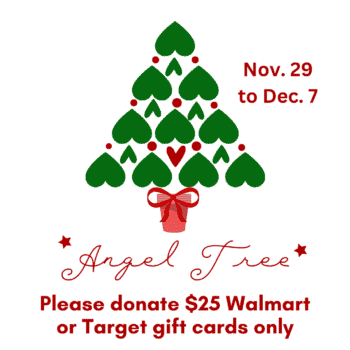 Our annual Angel Tree program provides Christmas gifts for three low-income Catholic schools, two low-income nursing homes, Risen Christ parishioners in need, and Marisol’s women’s home. We are collecting $25 gift cards to Walmart and Target. We are hoping to collect 500 gift cards. For your convenience, you can donate online to our gift card fund, and we will buy the gift cards.