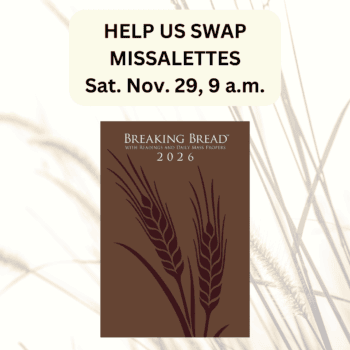 Help us to swap out the missalettes after the 8:30 a.m. Mass. This is an easy service project for the whole family!