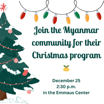 The Myanmar Community at Risen Christ will be presenting a traditional Myanmar Christmas program, with traditional songs and dances. The program is followed by traditional food.