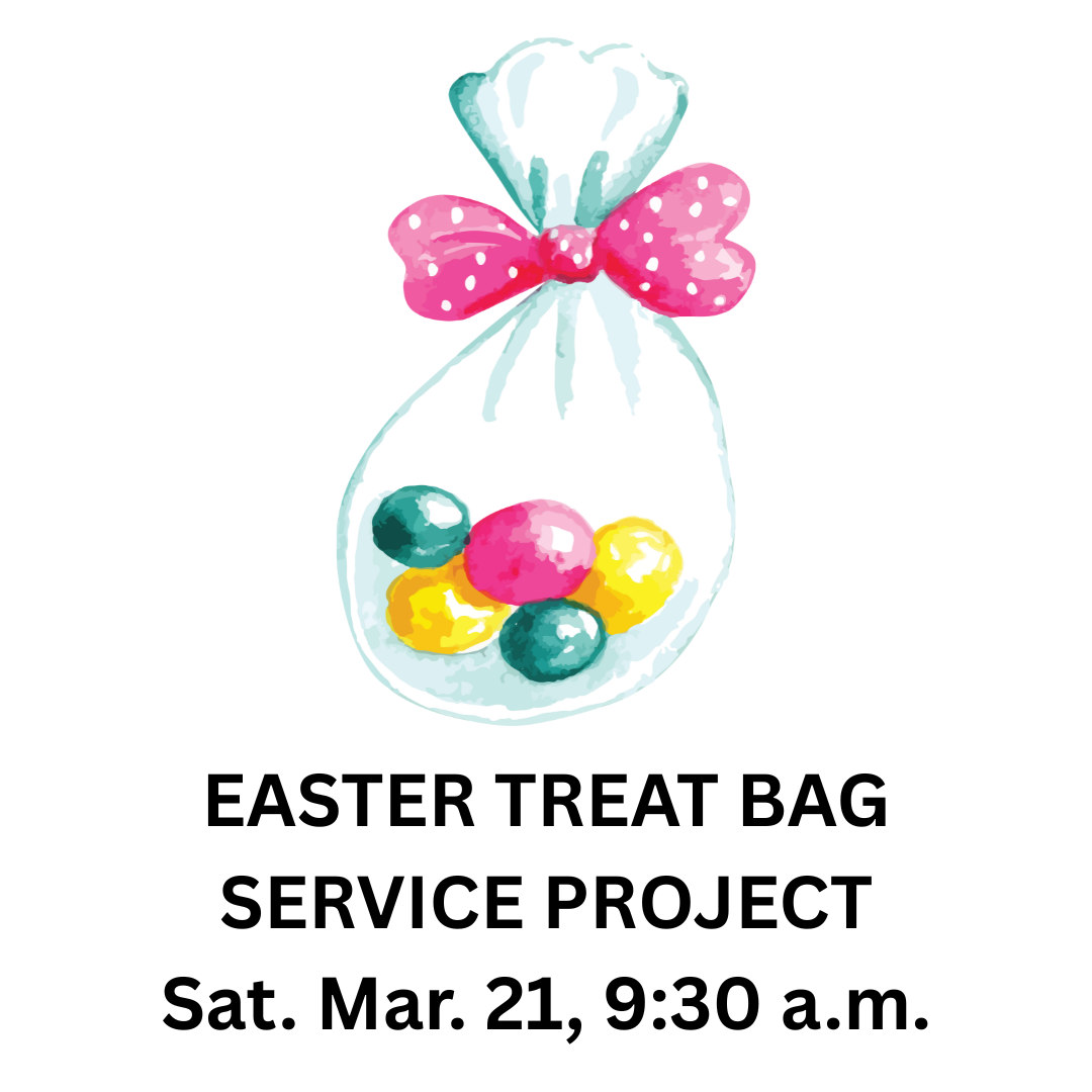 Help us make Easter treat bags for residents of Holly Heights and Rowan nursing homes. This is a great project for families with small children. Please bring individually-wrapped Easter candy, and help us assemble the treat bags.