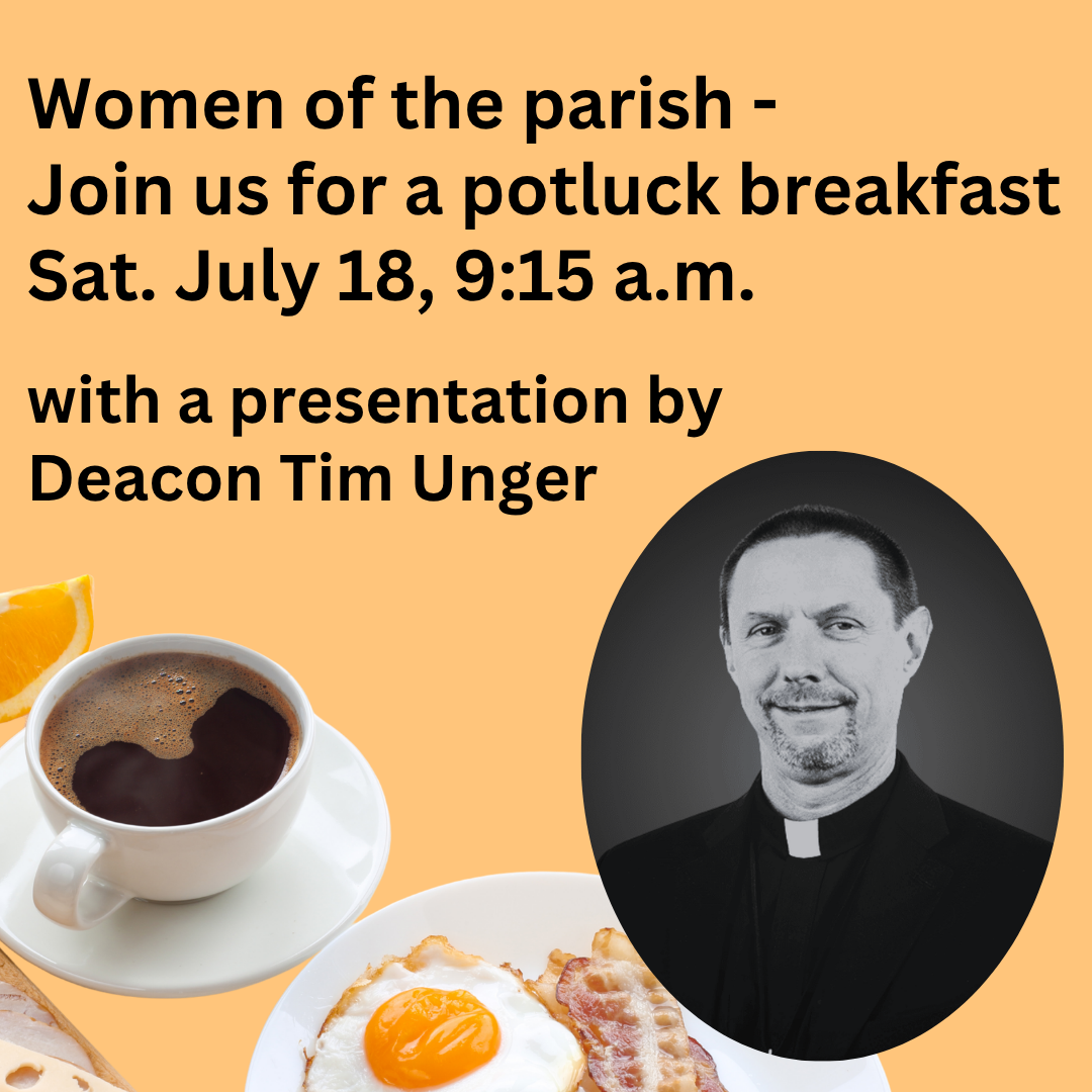 Potluck breakfast, with a presentation by Deacon Tim Unger.